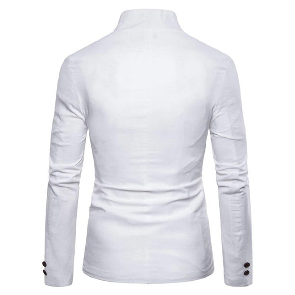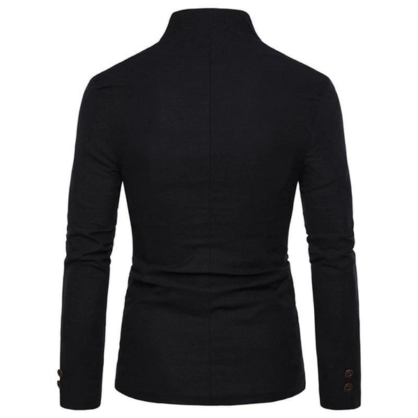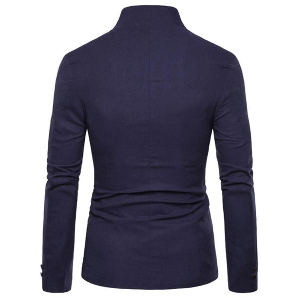 Add a tailored look to any outfit with this slim fit men's blazer, featuring a single chest pocket with a handkerchief for a fun touch.