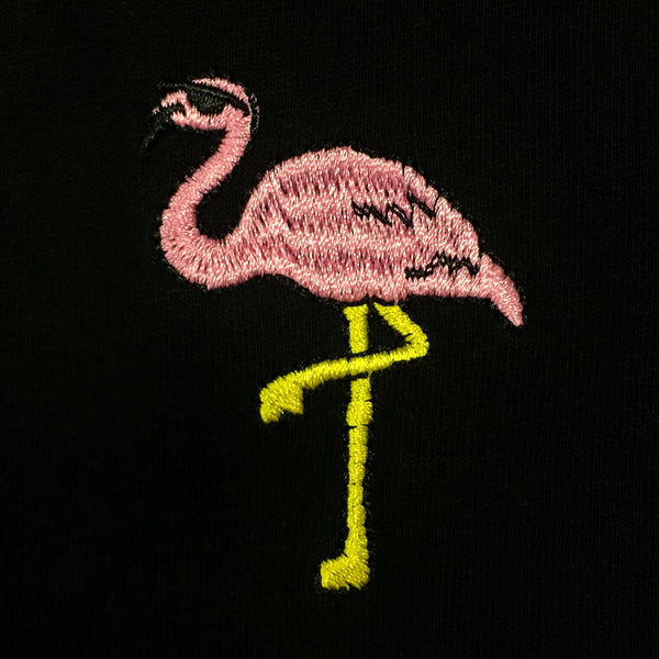 Keep your tropical looks classic with the Flamingo Embroidered T-Shirt. Designed with solid colors, this tee is highlighted by an embroidered flamingo graphic for a cool look.