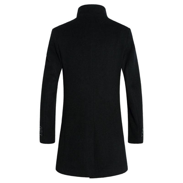 Step into the colder seasons in this luxurious overcoat, made from wool-rich fabric. Buttoned cuffs and standing collar lock in warmth, while a button front keeps out the elements.