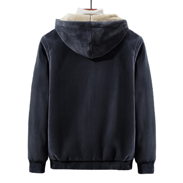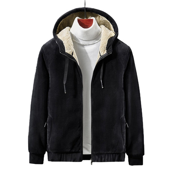 Upgrade your look in versatile style with the Pollogie™ Reversible Warm Hooded Jacket. Featuring a black velvet construction on one side, while the reverse side is made from an off-white sherpa fleece material for warmth.
