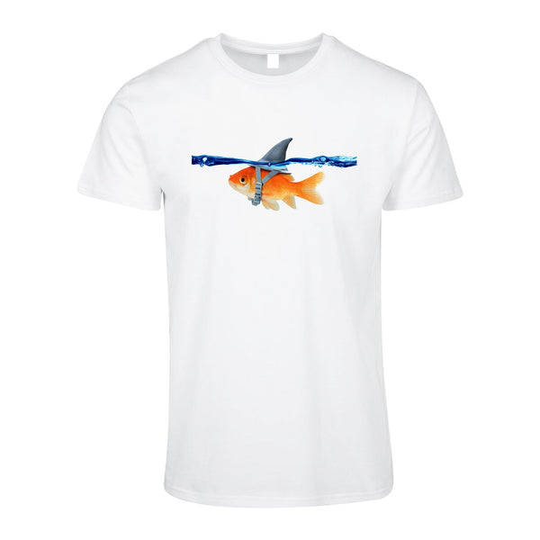 Let the world know that you are a brave person in this funny Pollogie™ Goldfishy T-Shirt. Completed a soft, comfy cotton construction, while the front is highlighted by a fish graphic with a shark fin to turn heads.