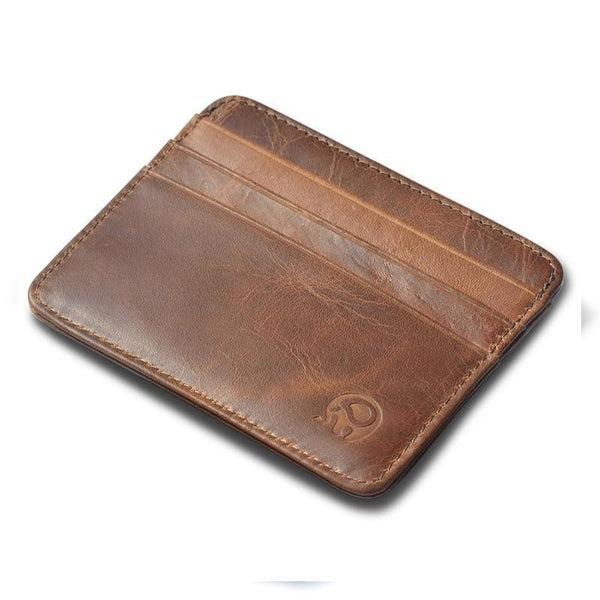 Small credit card holder made of high quality genuine cow leather. Features three card holders, an ID holder and an inner pouch as a cash compartment.