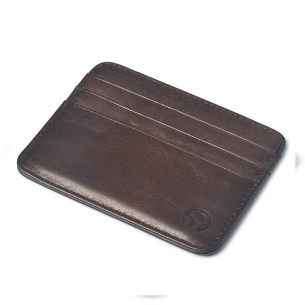 Small credit card holder made of high quality genuine cow leather. Features three card holders, an ID holder and an inner pouch as a cash compartment.